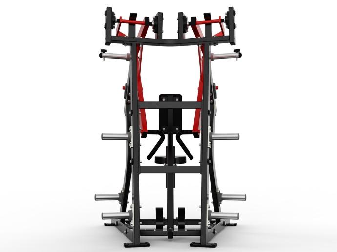La trayectoria del movimiento es la inversa de la prensa declinada Iso-Lateral, lo que facilita ejercicios de empuje/tracción efectivos. Un asa adicional ayuda a estabilizar al usuario durante los entrenamientos con un solo brazo. El diseño Iso-Lateral garantiza un desarrollo uniforme de la fuerza en ambos lados.