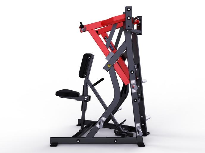 La trayectoria del movimiento es la inversa de la prensa declinada Iso-Lateral, lo que facilita ejercicios de empuje/tracción efectivos. Un asa adicional ayuda a estabilizar al usuario durante los entrenamientos con un solo brazo. El diseño Iso-Lateral garantiza un desarrollo uniforme de la fuerza en ambos lados.