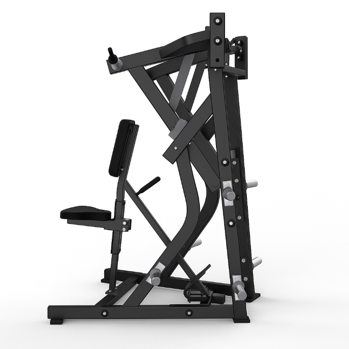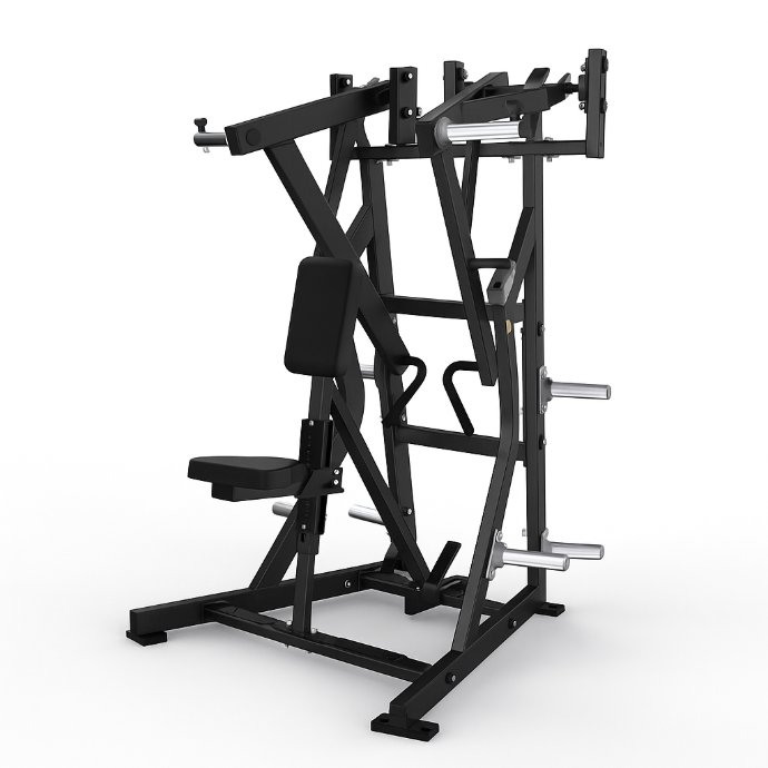La trayectoria del movimiento es la inversa de la prensa declinada Iso-Lateral, lo que facilita ejercicios de empuje/tracción efectivos. Un asa adicional ayuda a estabilizar al usuario durante los entrenamientos con un solo brazo. El diseño Iso-Lateral garantiza un desarrollo uniforme de la fuerza en ambos lados.