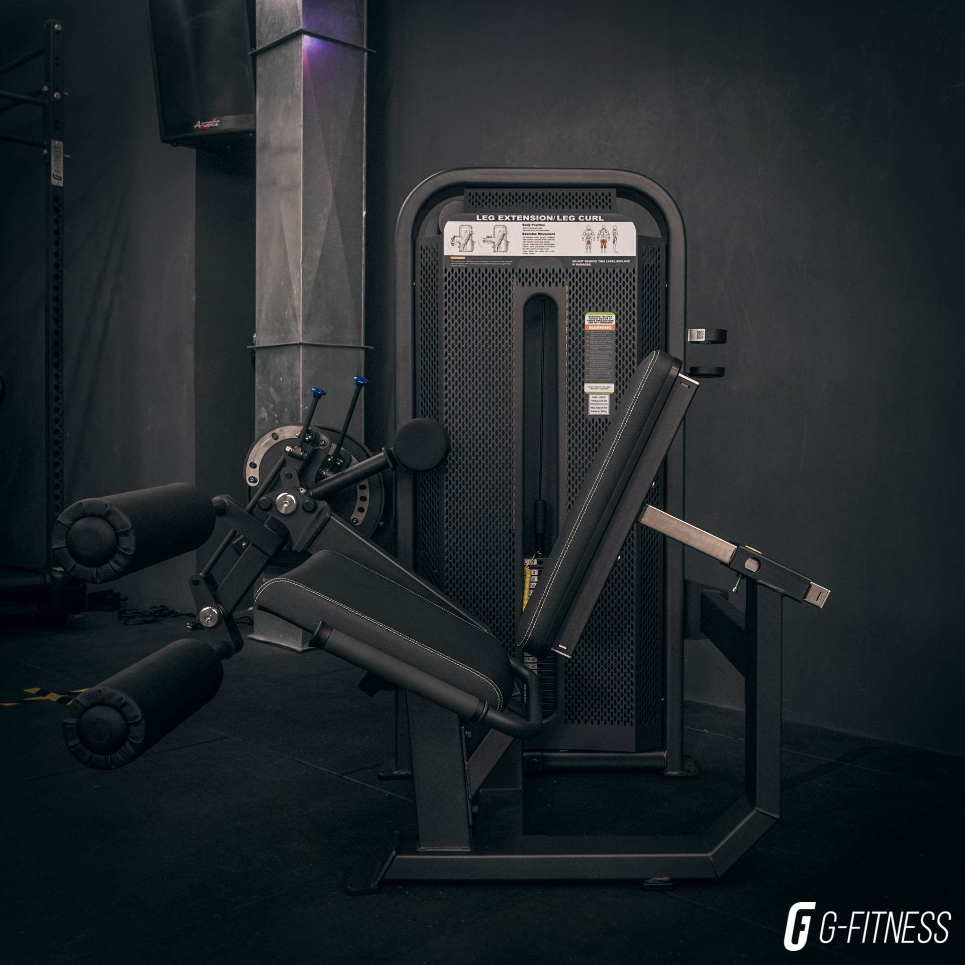 Dos máquinas en una: extensión de piernas y flexión de piernas sentado. Permite la realización de un doble ejercicio: extensión de pierna (cuádriceps) y curl o flexión de pierna (femoral).