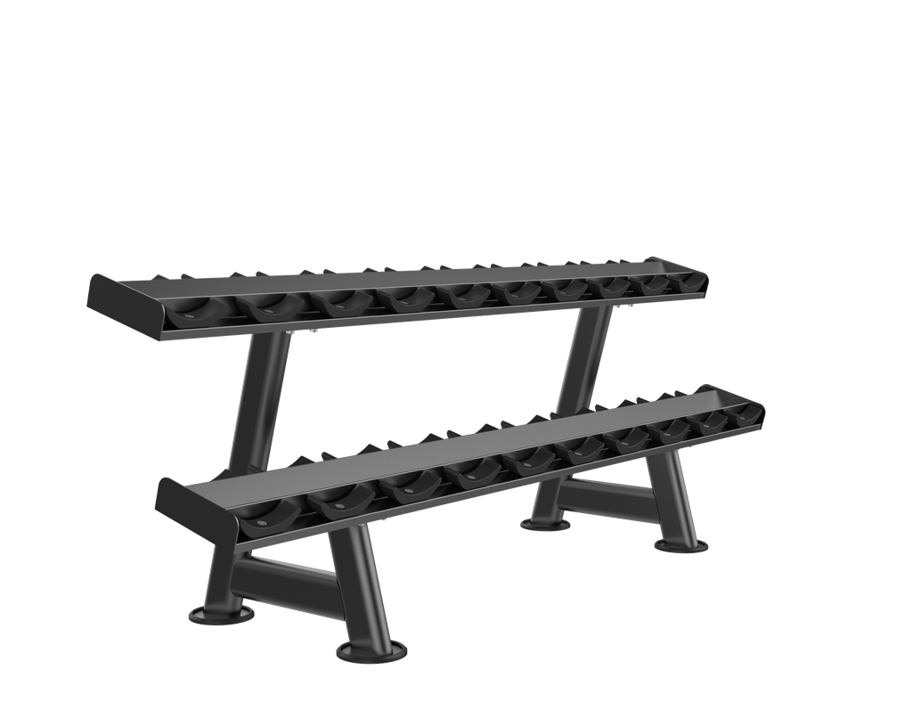 Con capacidad para 10 pares de mancuernas (20 unidades en total), es ideal tanto para salas de musculación profesionales como para espacios de entrenamiento personal que buscan mantener el orden y la estética.